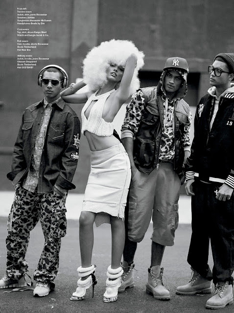 Fashion has always followed its own beat and V Magazine first ever Music issue (on stands January 12th) pays tribute to the dynamic influence of trend setting performers through the ages. Inside V75 Sebastian Faena and Carlyne Cerf De Dudzeele explore the relationship between hip hop & high fashion in an outlandish editorial. Credited as the very first editor to embrace urban culture (Carlyne brought the look to the pages of Vogue Italia way back in 1990) Carlyne has a long history of taking looks off the street and translating them for the editorial pages. Cerf De Dudzeele tells V “I love girls that men want to follow in the street—glamorous, sexy, powerful. You’re born with it, it’s not something you learn. I have always been obsessed by hip-hop. L’attitude is always right.”
