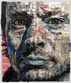 ” I started making assemblage artworks of this type in 1999. The artworks are made entirely out of collected junk, found objects, and general trash. I glue the bits of junk to a wooden substrate to form an image, usually faces, which only can be seen at a distance. I was interested in communicating through visual representation in apparent 2-dimensional space and through the actual objects used for the medium in 3-dimensional space. It is very important to me that I incorporate the actual objects into the art as opposed to a picture or rendition of it because it better expresses the intention of the artwork. I feel the junk is more powerful being present. It is an actual thing to be reckoned with that existed in this time and place and carries energy in and of itself.” – Zac Freeman